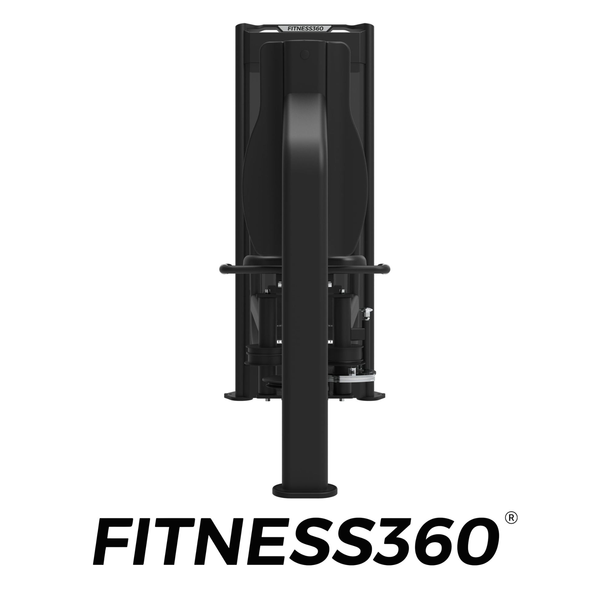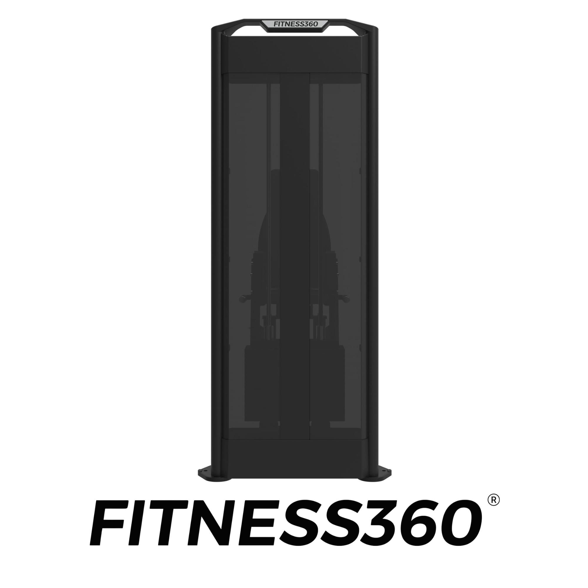The weight magazine is built into a solid steel frame with a laser-cut FITNESS360 logo. At the top of the magazine, a practical storage recess allows users to place personal items such as a water bottle or phone during training.