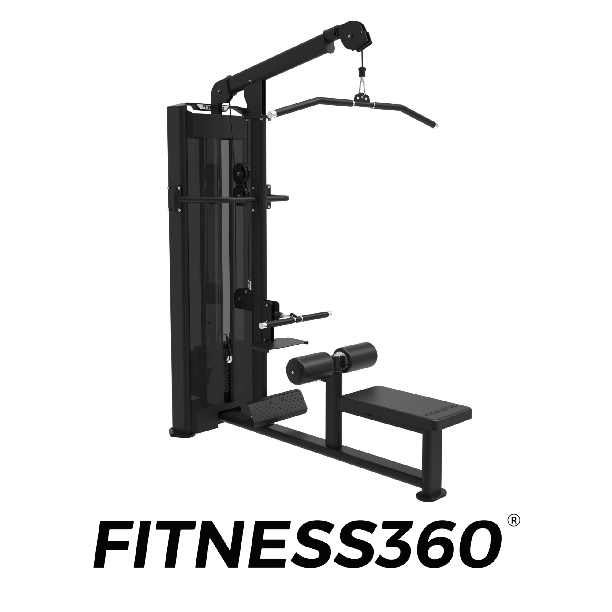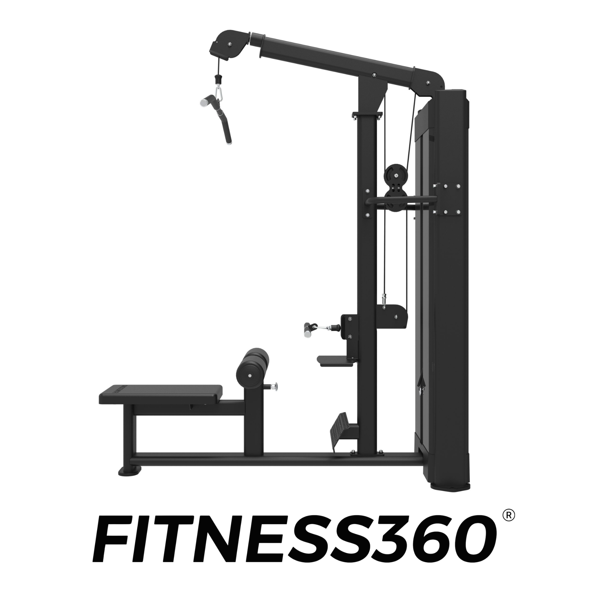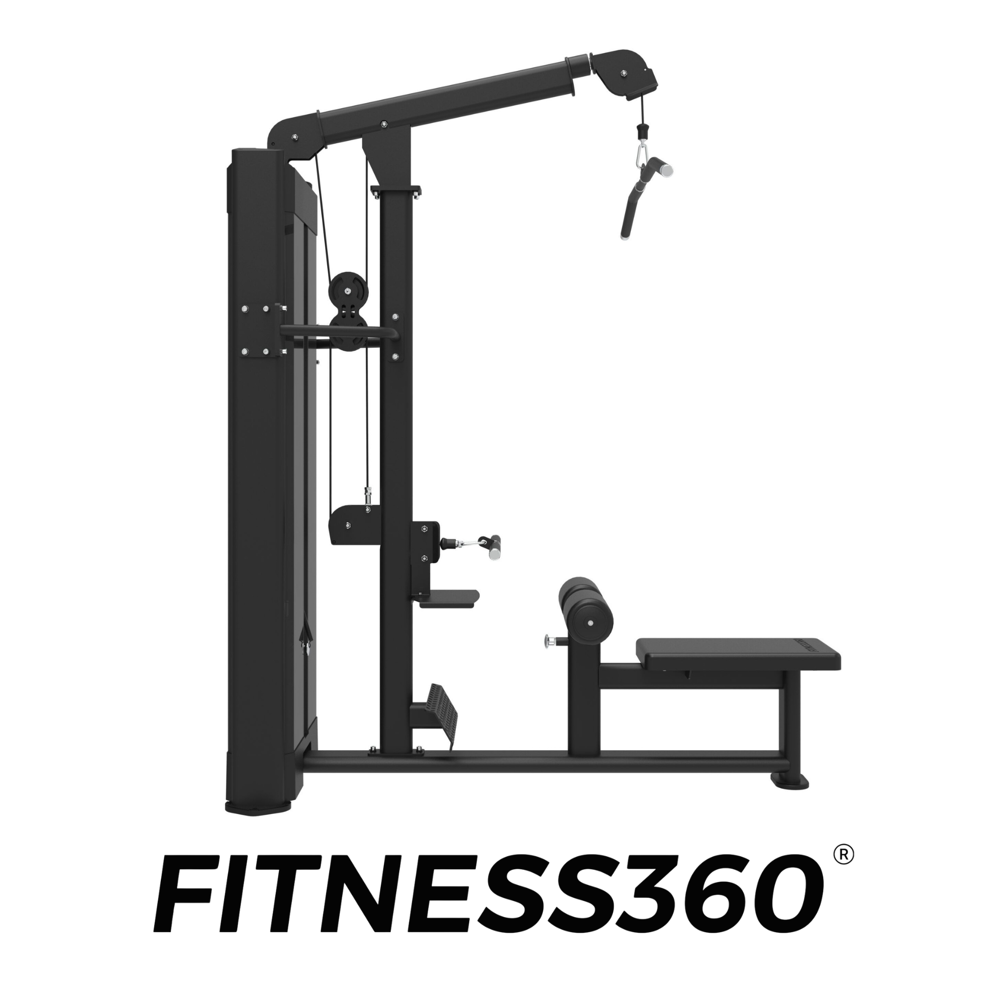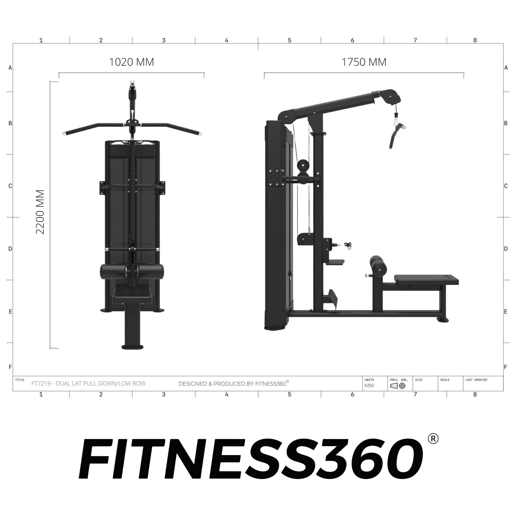 The Dual Lat Pull Down/Low Row is a professional strength machine designed to train the upper and lower back muscles in a seated position. Fitness360 developed this machine to combine versatility, efficiency, and space savings in one unit. Therefore, users can perform two essential back exercises without switching machines.