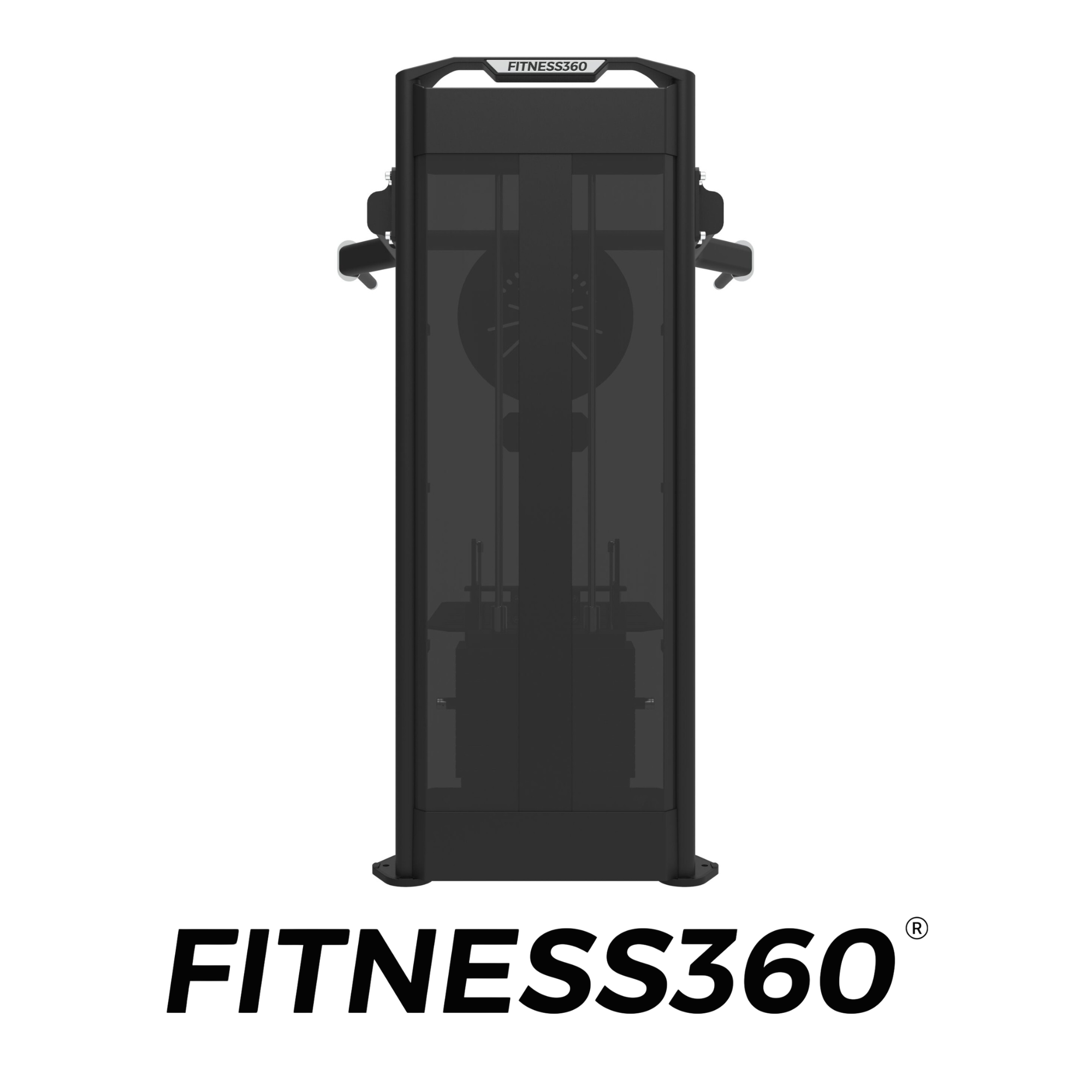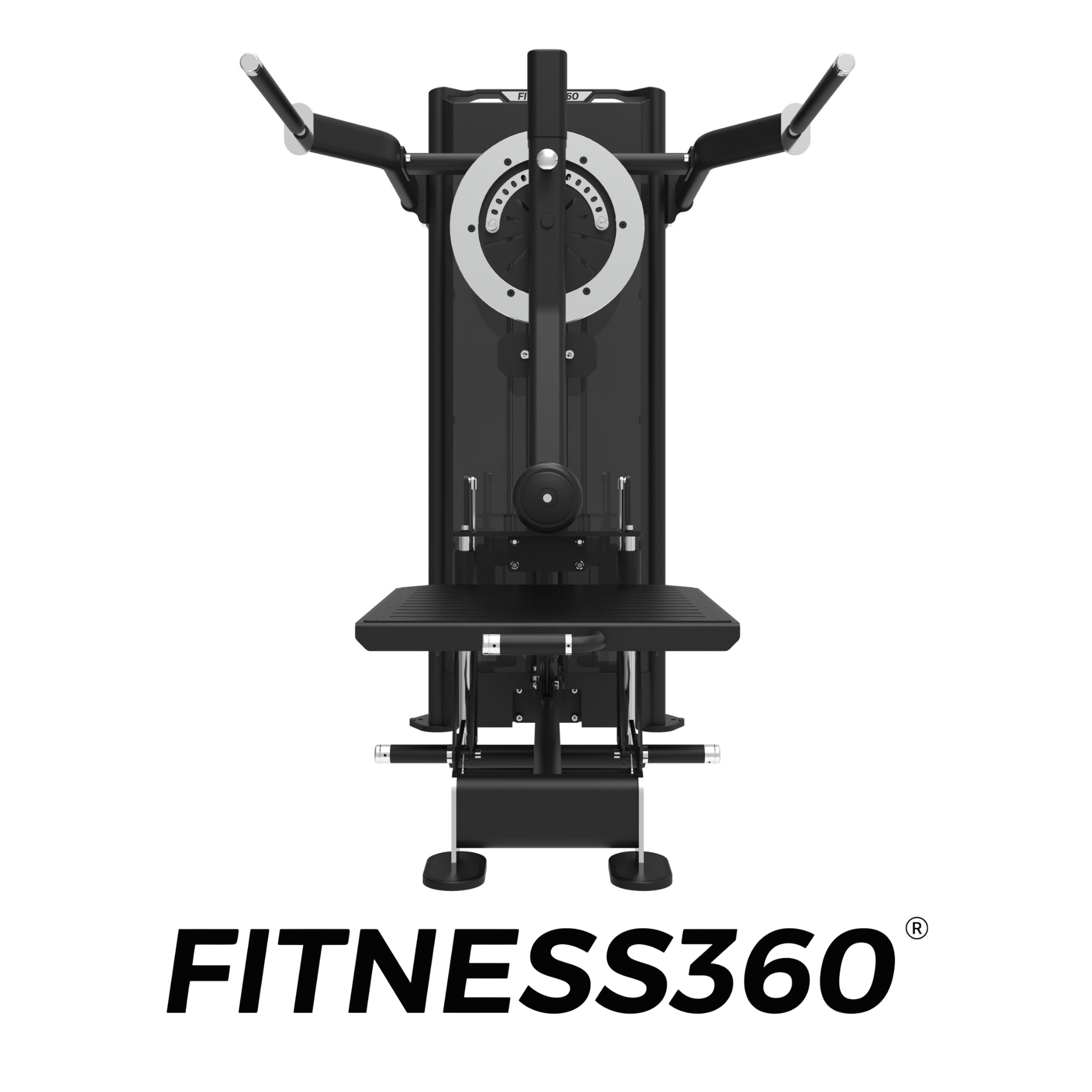 The pads are made from robust, wear-resistant materials with heat-printed FITNESS360 branding. All grips and adjustment components feature black or chrome finishes, reinforcing the clean and minimalist design of the FITNESS360 pin-loaded range.