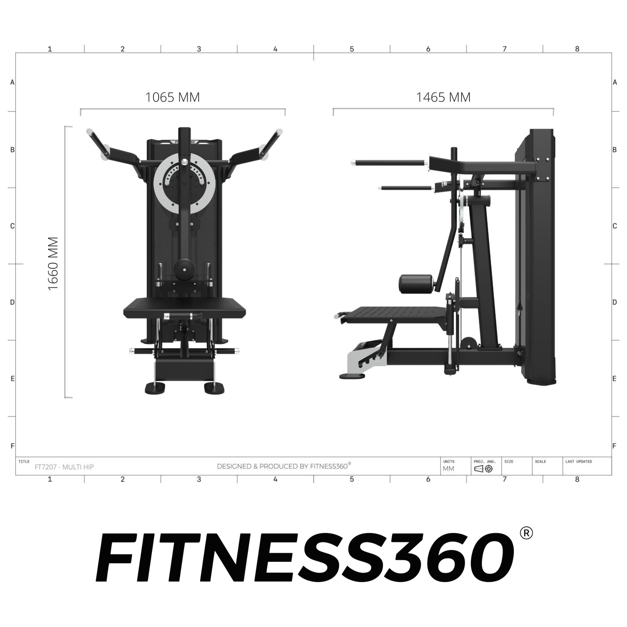 The Multi Hip Machine is a professional strength machine designed to train the hips, legs, and gluteal muscles through multiple controlled movement patterns. Fitness360 developed this machine to provide high flexibility while maintaining stability and user safety. Therefore, users can perform targeted lower-body exercises with consistent technique.