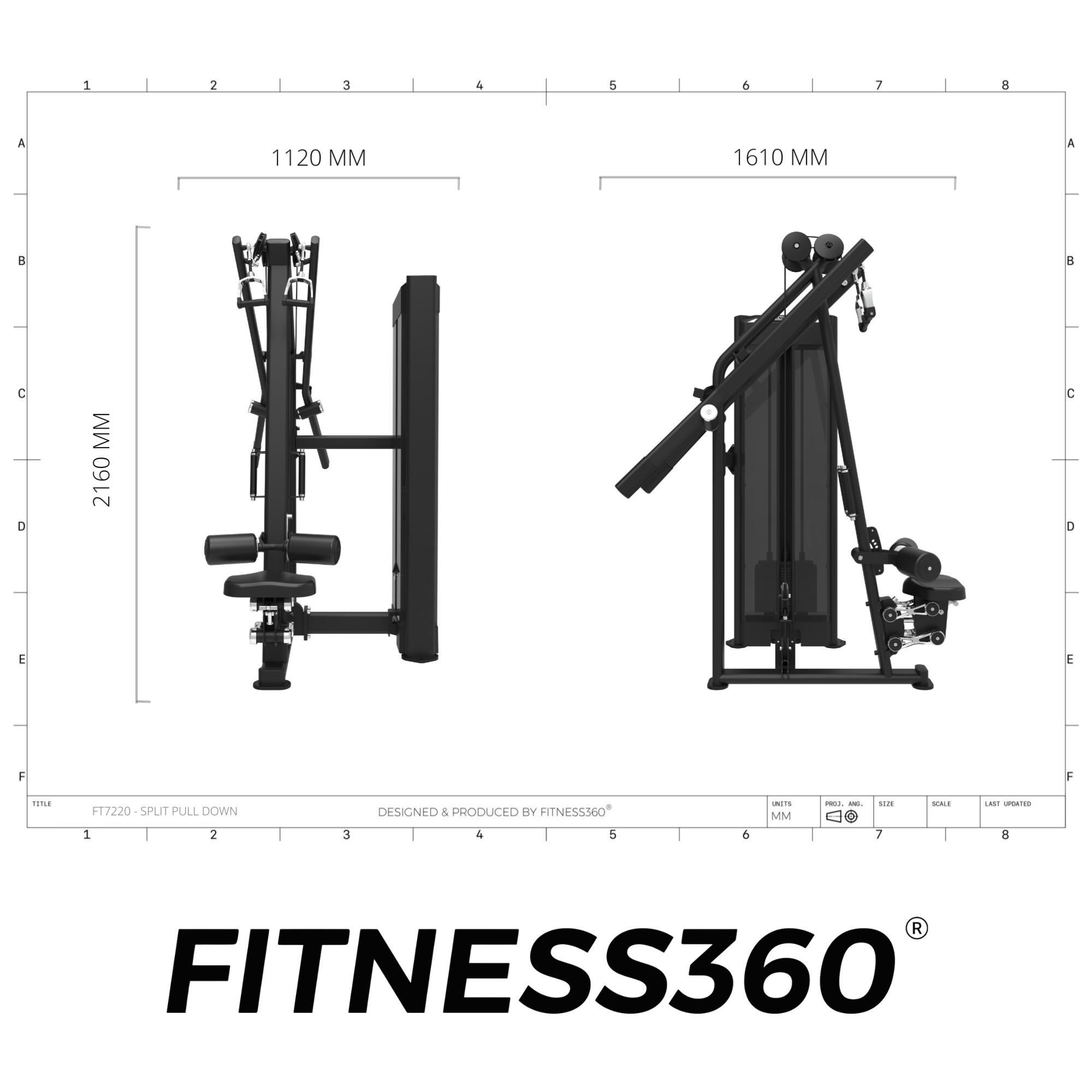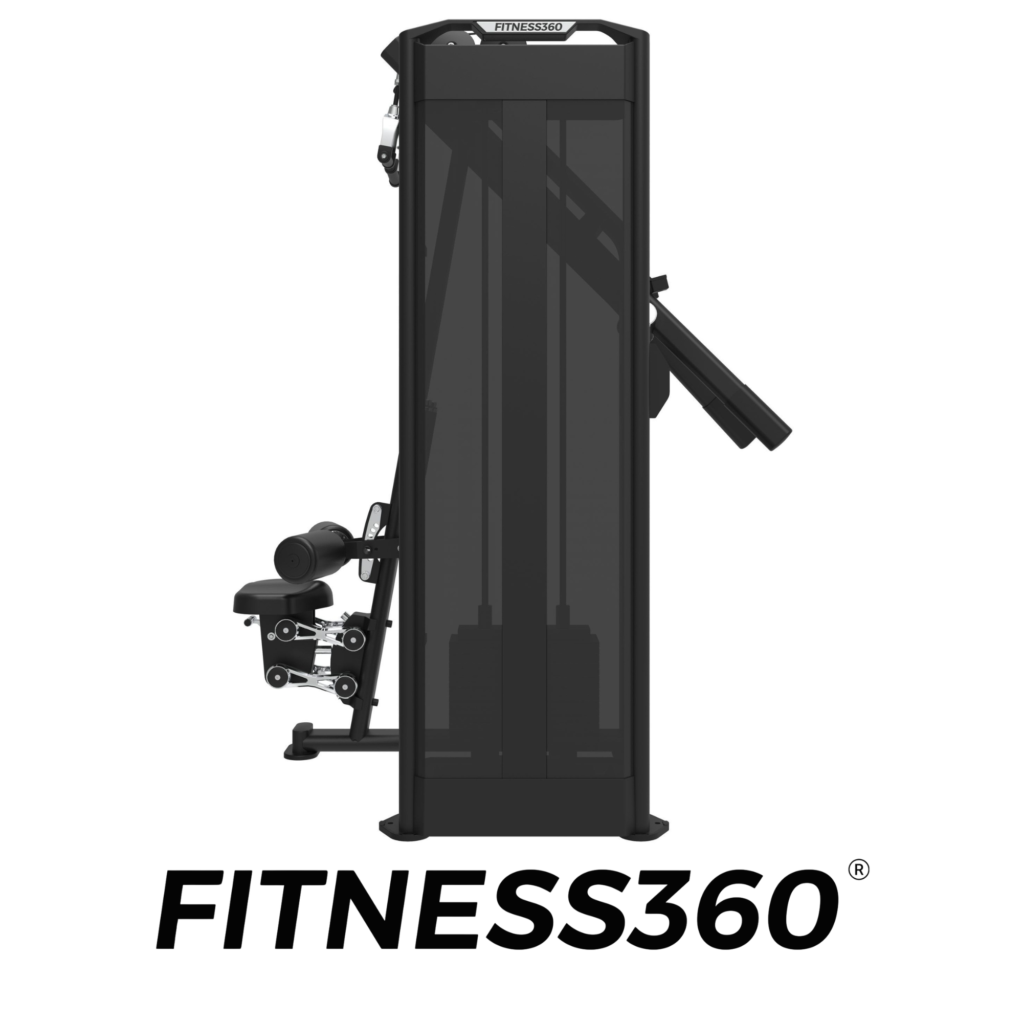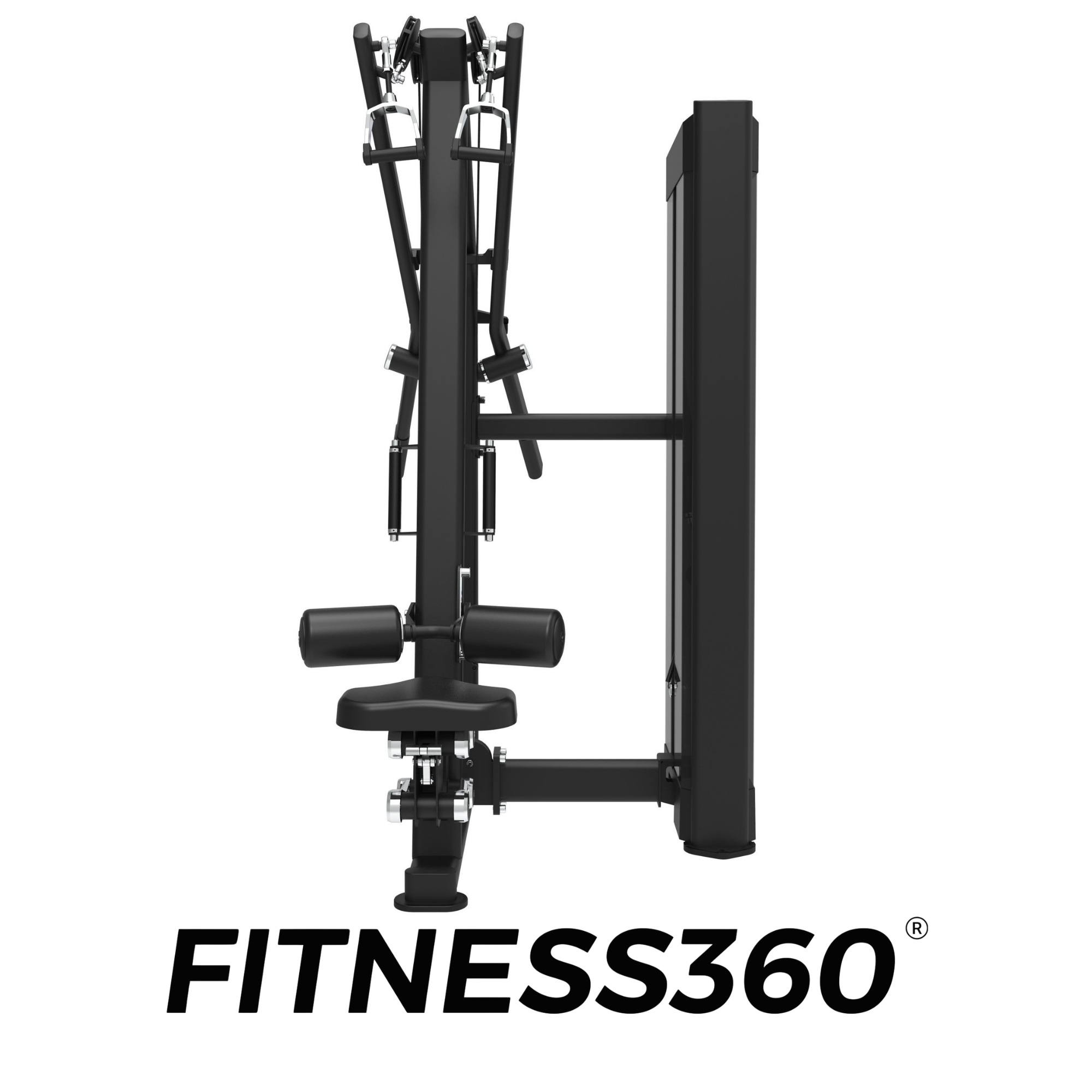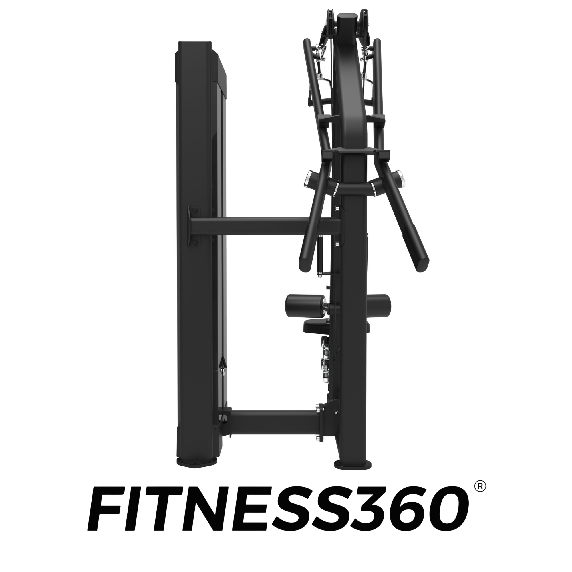 The Split Pull Down Machine is a professional pin-loaded strength machine designed to effectively train the latissimus dorsi and upper back muscles in a seated position. Fitness360 developed this machine with independent pulling arms, which allow users to train one side at a time. Therefore, it supports balanced strength development and improved muscle symmetry.