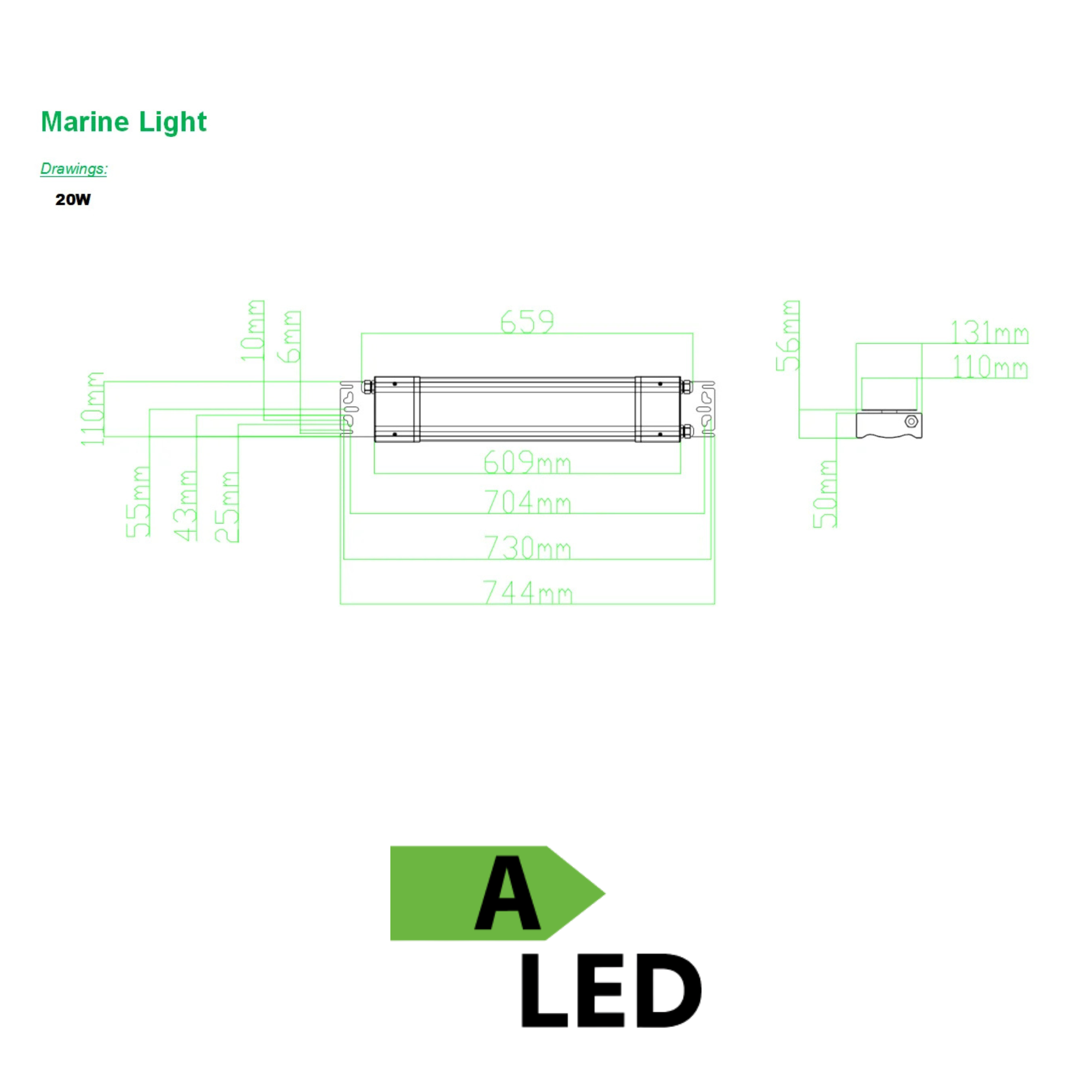 Power: 20W (600 mm) / 40W (1200 mm)